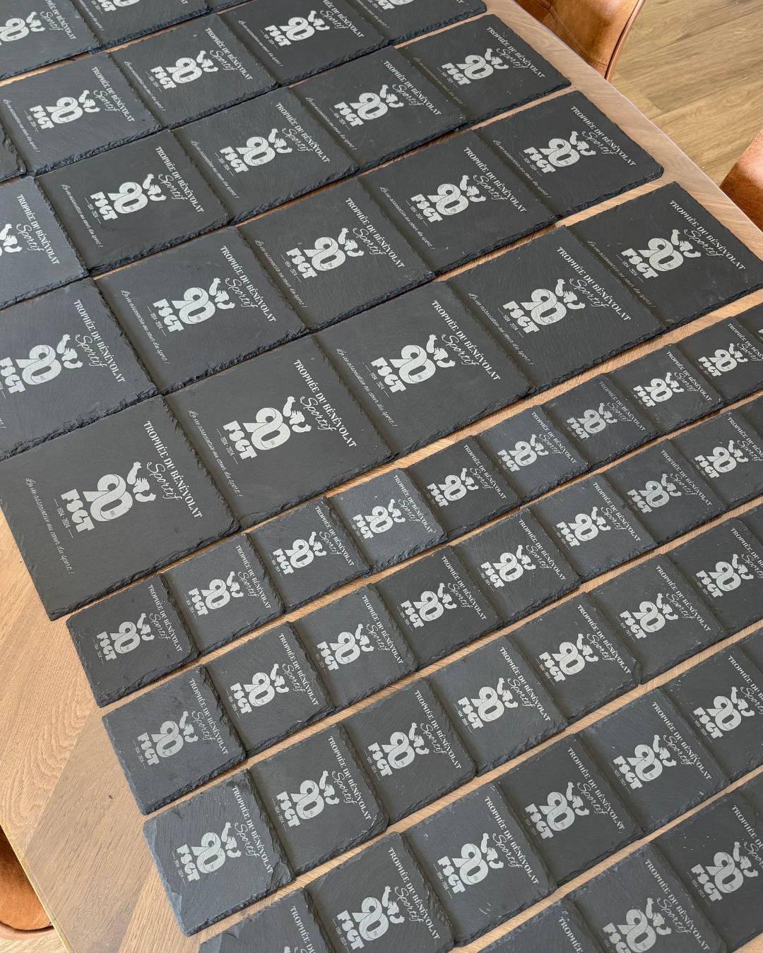 Je vous accompagne dans la réalisation de projets personnalisés et de commandes en volume : goodies clients, logo, médailles et trophées, cartes et menus de restaurant, signalétique, cadeaux d’entreprise, etc.