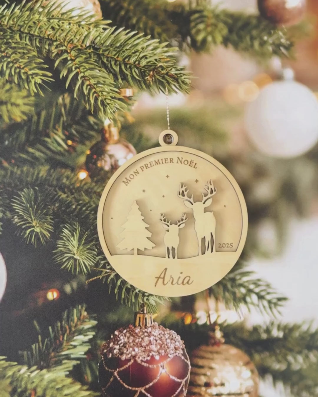 Célébrez un moment unique avec cette jolie boule de Noël personnalisée “Mon premier Noël”. Un souvenir précieux à accrocher dans le sapin pour marquer la première fête magique de bébé.