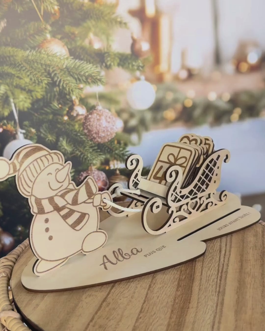 Faites patienter les enfants grâce à ce traîneau de décompte de Noël personnalisé au prénom de votre enfant (ou de plusieurs enfants).